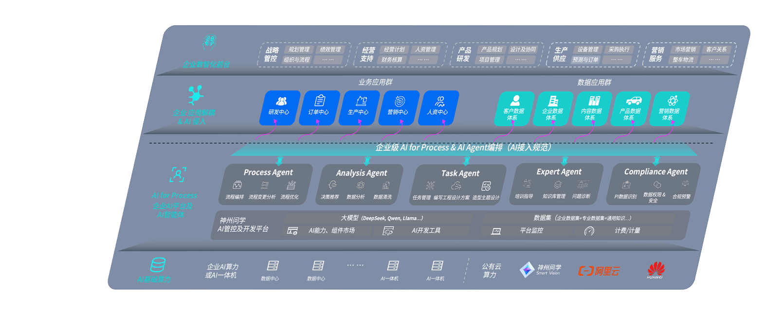 端到端的一站式AI工作空间深度融合了从企业战略规划到日常经营的全流程业务板块,,定向解决车企内部领域多、、、、部门多、、、、链条长、、场景碎片化等难题,,,支持车企快速构建以AI为核心的生产力写作体系,,,,实现任务执行与AI能力的无缝集成与交互
